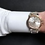 38 mm Edelstahlgehäuse. Lünette aus rosévergoldetem PVD-beschichtetem Stahl. Kratzfestes Mineralglas.