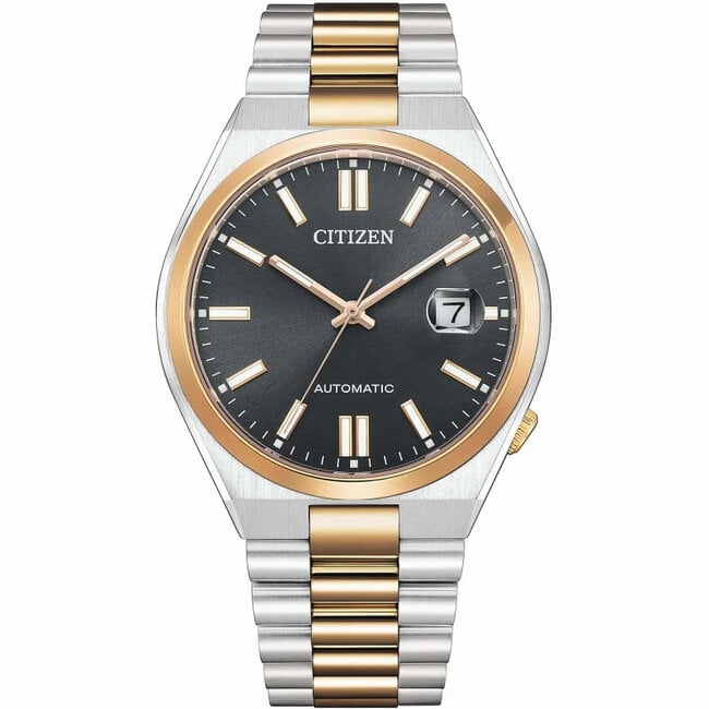 Citizen Herrenuhr aus der Tsuyosa Kollektion. Das Uhrwerk der Uhr ist mechanisch mit automatischem Aufzug mit Datumsfunktionen. Das Gehäuse mit 40 mm Durchmesser besteht aus zweifarbigem Silber und Roségold-Stahl. Lesen Sie mehr.