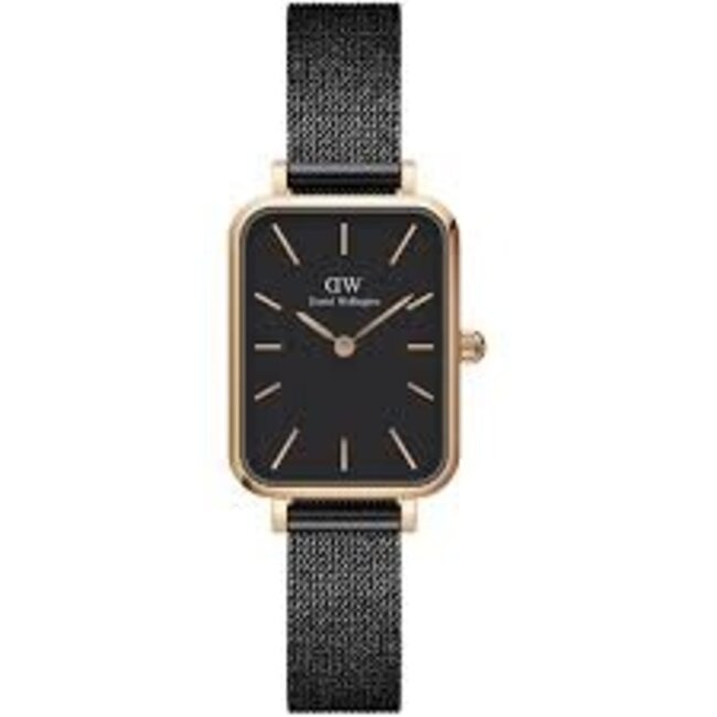 Präzises Quarzuhrwerk (batteriebetrieben) · Schwarzes schlichtes Zifferblatt mit zarten Indizes in rosegoldfarben · Eckiges ionenplattiertes Edelstahlgehäuse, Lesen Sie mehr.