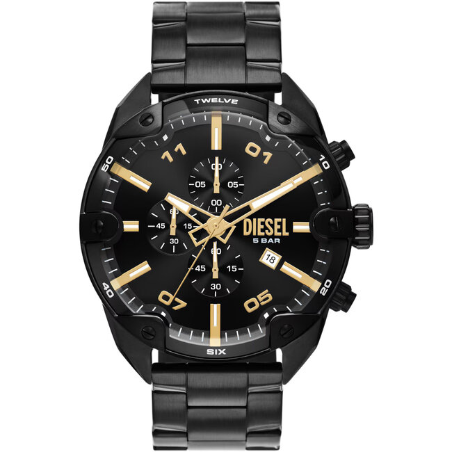 Diesel Spiked Chronograph - DZ4644 ; Wasserdichtigkeit. 50 m / 5 bar ; Verschluss. Faltschliesse ; Funktionen. Datum, Chronograph (Stoppuhr) ; Durchmesser. 49 mm Lesen Sie mehr.