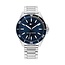 Quarz-Uhrwerk mit drei Zeigern · Gehäusedicke 10,0 mm / Durchmesser des Gehäuses: 43 mm · Blaues Zifferblatt mit Edelstahl-Akzenten · Edelstahl-Gliederarmband Lesen Sie mehr.