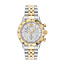 Die Uhr hat ein edles bicolor Design aus Edelstahl, das sowohl zu Gold- als auch zu Silber passt. Das silberne Zifferblatt .