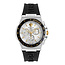 Ein neuer maskuliner Zeitmesser mit einem kühnen 45-mm-Gehäuse, das mit einem Chrono-Uhrwerk und einem Fensterdatum bei 6 Uhr und einem Tagesdatum bei 12 Uhr angereichert ist. Das Zifferblatt ist mit einer Greca auf dem Innenring verziert, während der obere Ring mit fetten Logo-Ziffern versehen ist und mit einem Silikonarmband mit einer 3D-Greca angeboten wird.